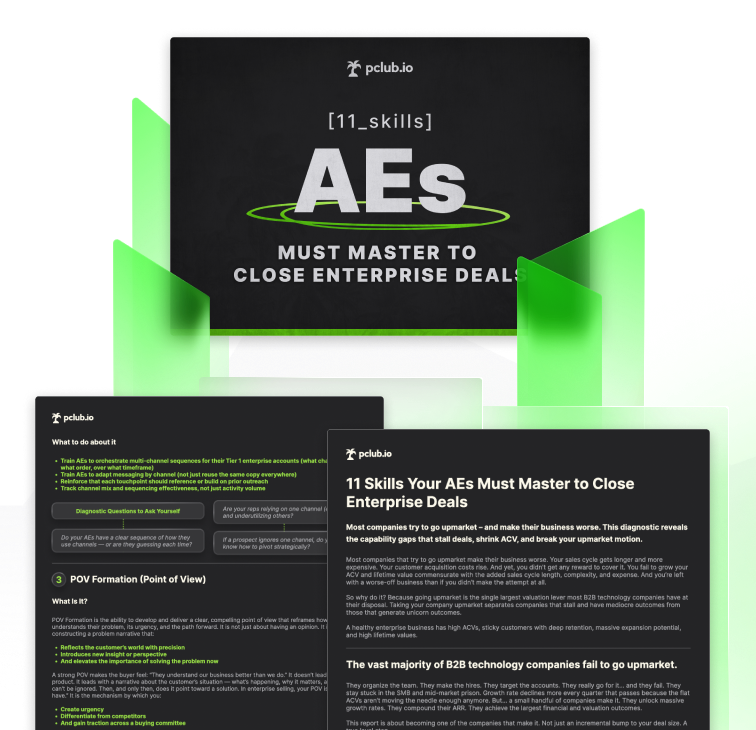 Unlock the reportDownload the full report to explore the skills, capabilities, and benchmarks required to win enterprise deals. Built to help revenue leaders identify capability gaps across their team, this report is designed to show where the upmarket motion is breaking — and what needs to improve to drive better pipeline and deal outcomes.