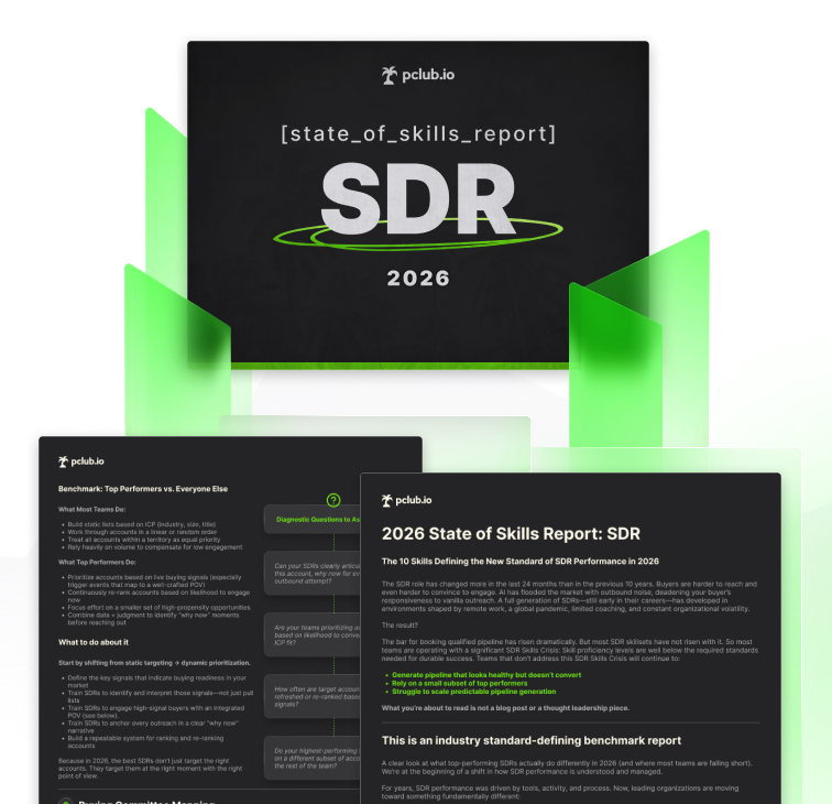 Join the waitlistDownload the full report to explore the frameworks, skills, and benchmarks defining SDR performance in 2026. Built with insights from experienced operators, this report is designed to help you identify capability gaps and improve pipeline outcomes.
